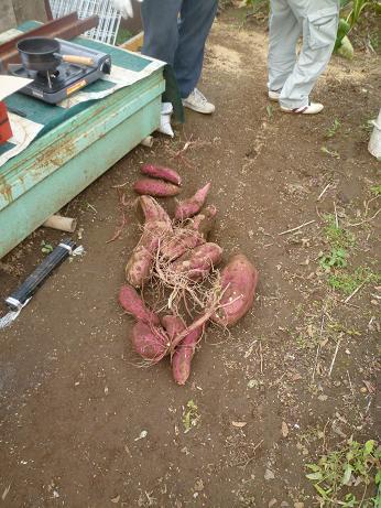 子ども達は掘り出したお芋を両手いっぱいに抱えて運びます。