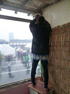 雨が入らないよう、ビニールで覆った櫓の中で、
