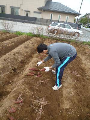 子ども達は掘り出したお芋を両手いっぱいに抱えて運びます。
