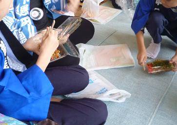お互いの景品を見せ合いながら、クリスマス会を楽しんでいました。