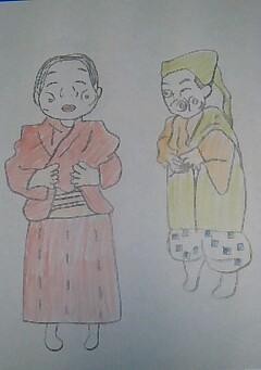 おかめを踊る自分と、ひょっとこを踊る弟を描いてくれました。