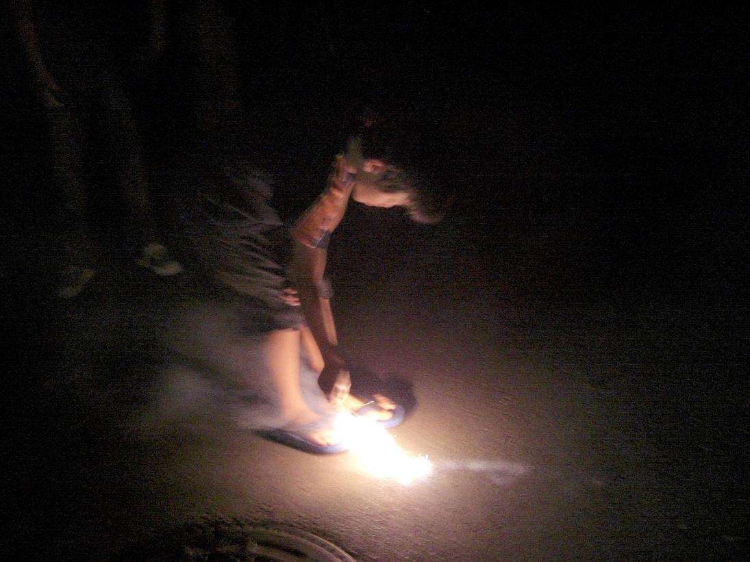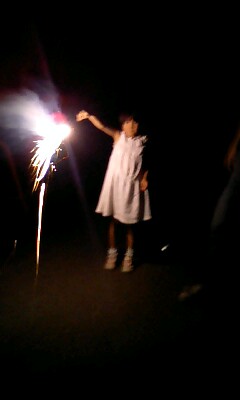練習の合間に、子ども達と手持ち花火をしました。