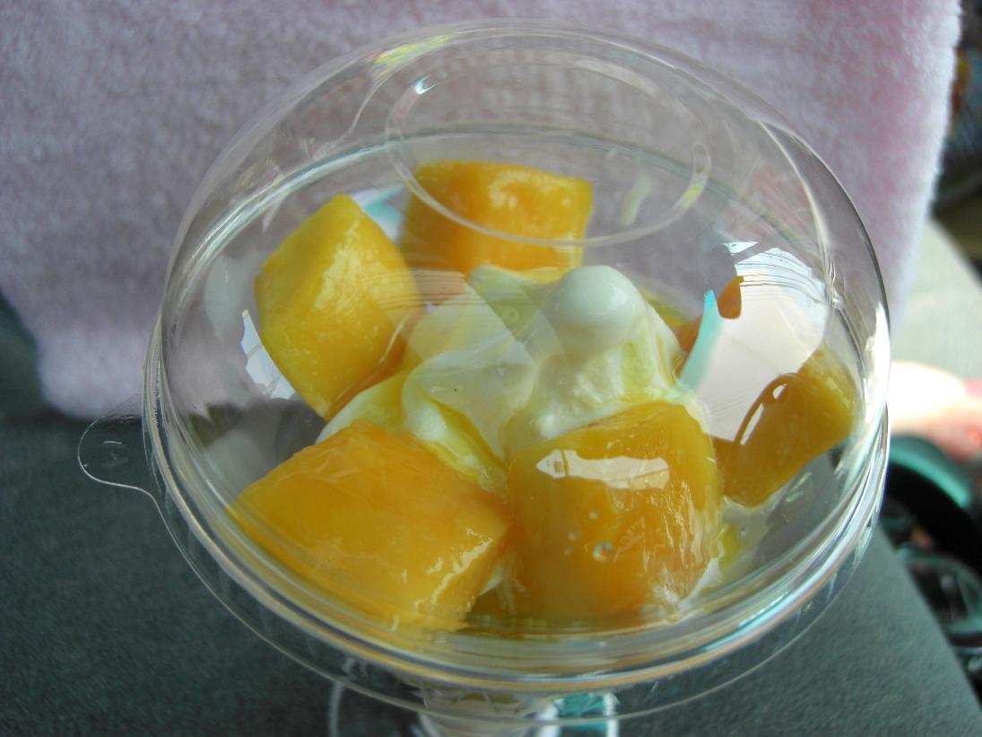 コンビニでパフェ(?)を買って凌いだ、とのことです。
