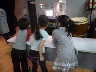 CDをかけながら一人ずつ太鼓に向かい