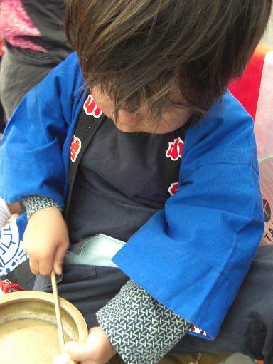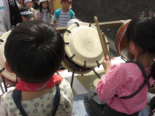 一人一回ずつ太鼓を叩いてから、